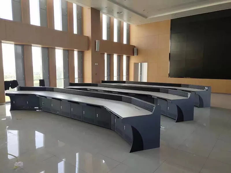 A: بنیادی فوائد اپنی مرضی کے مطابق موافقت اور قابل اعتماد معیار ہیں۔ صنعت کے برسوں کے تجربے کے ساتھ، ہم کمانڈ سینٹرز کی جگہ اور آلات کے انضمام کی ضروریات کو درست طریقے سے میچ کر سکتے ہیں، جگہ کے استعمال کو زیادہ سے زیادہ کرنے اور موثر ترسیل کو آسان بنانے کے لیے ڈیزائن اور ترتیب کو اپنی مرضی کے مطابق بنا سکتے ہیں۔