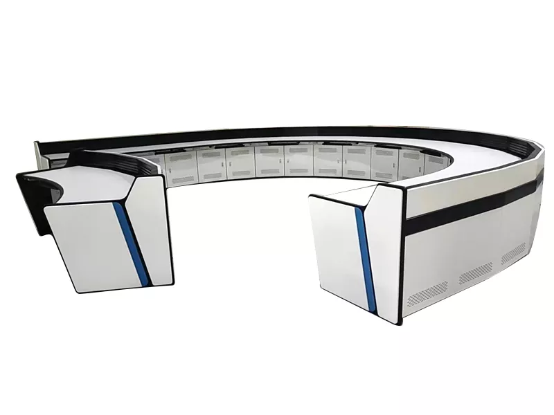 اس پراڈکٹ میں U-shaped ڈھانچہ کا ڈیزائن شامل ہے، جس سے نگرانی کے آلات کی مرکزی تعیناتی، ملٹی اینگل انفارمیشن ڈسپلے، اور موثر تعاون پر مبنی آپریشن ممکن ہے۔ یہ سرکاری کمانڈ سینٹرز، انٹرپرائز مانیٹرنگ رومز، اربن سیکیورٹی سسٹمز اور انرجی ڈسپیچ سینٹرز میں بڑے پیمانے پر استعمال ہوتا رہا ہے۔